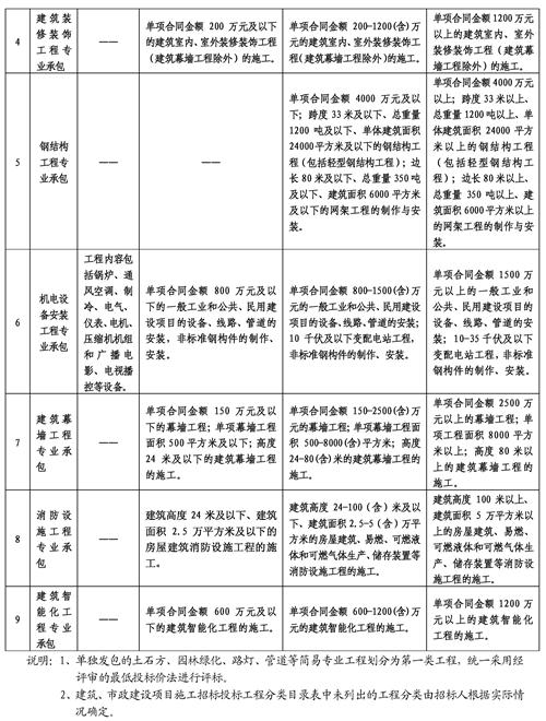(二)政府投资建设工程项目分类。政府投资建设工程项目划分为四类:一类为简易专业工程,二类为具有通用技术、性能标准的一般建设工程,三类为结构复杂、规模较大的建设工程,四类为技术特别复杂、施工有特殊技术要求的建设工程。(详见附件1)